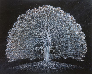 This technique is perfect for painting the crystalline worlds that Venosa envisioned: Light travels through the surface oil glazes, bounces off the white tempera underpainting, and comes back out hitting the eye with the illusion of transparent depth.